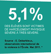 - Le harcèlement physique, qui se traduit par des coups, des bousculades, des jets d'objets, des vols, des dégradations de matériel scolaire ou d'objets personnels, l'enfermement dans une pièce, des violences à connotation sexuelle (voyeurisme, gestes déplacés...). En 2007 environ 5 % des élèves subissaient un harcèlement physique.